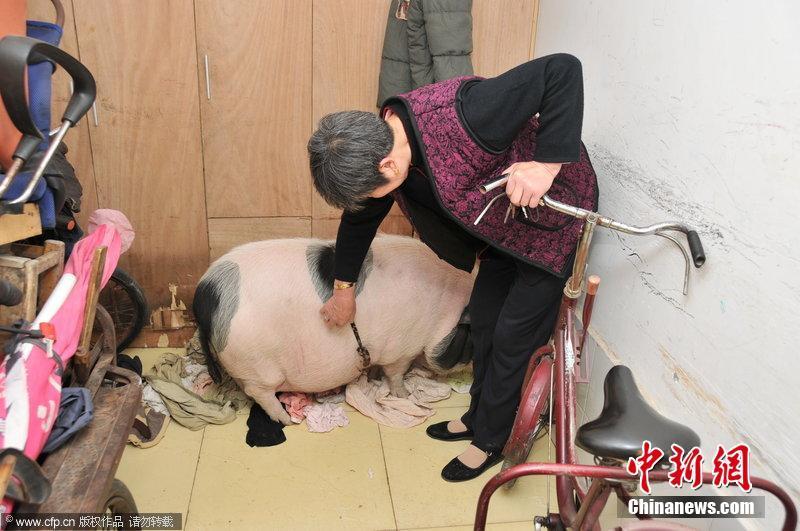 江苏建湖,你肯定见过遛狗、遛鸟或者遛兔子,这些算啥?都过时了!家住建湖的陶老太,现在每天在小区里遛一头重达180斤的大肥猪,成为一道独特的风景线。谁能想到,一年前,这头猪还只是长约30厘米,重不超过3斤的小宠物?专家称,它可能不是正宗的宠物猪,也有可能是在被骟后体重猛增。不过,主人与它已经有了深厚的感情,怎么也舍不得宰杀。