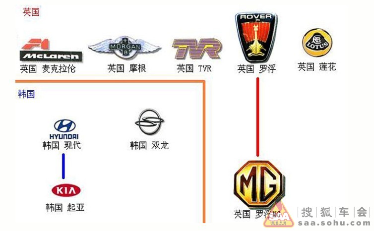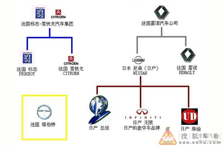 标致-雪铁龙谱系(图表左)和雷诺汽车谱系